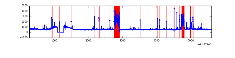 Red curve is a Poisson curve with rate = median count rate of data. |