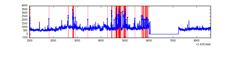 Red curve is a Poisson curve with rate = median count rate of data. |