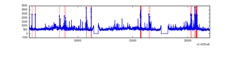 Red curve is a Poisson curve with rate = median count rate of data. |