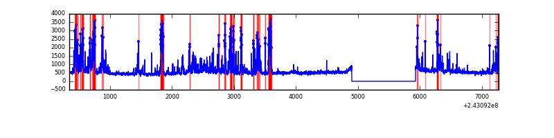 Red curve is a Poisson curve with rate = median count rate of data. |