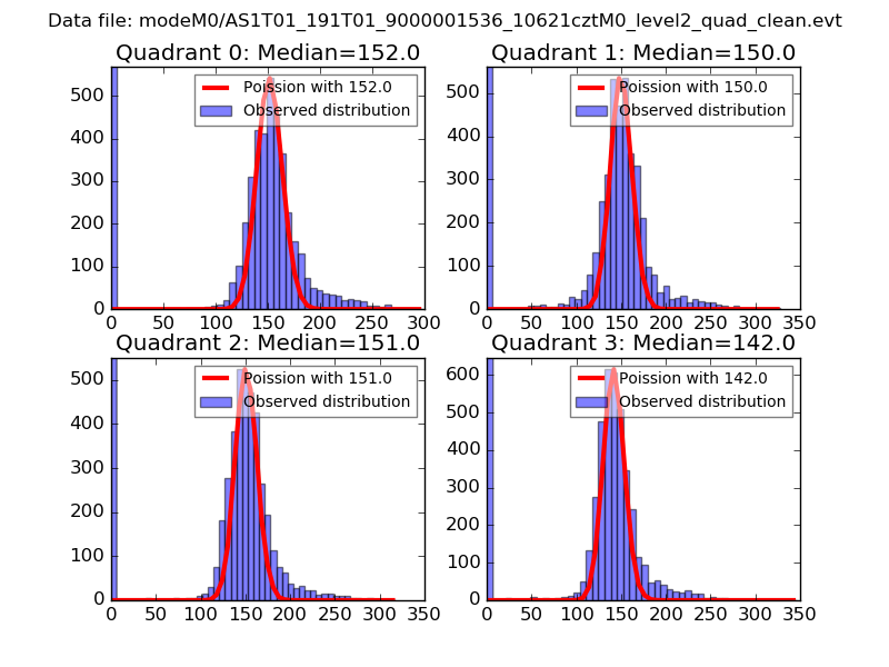Red curve is a Poisson curve with rate = median count rate of data. |