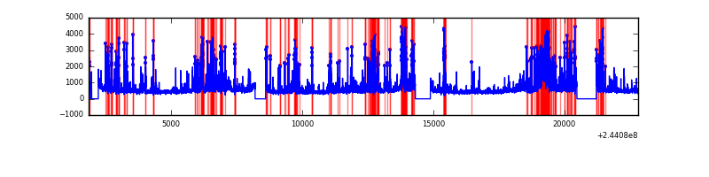 Red curve is a Poisson curve with rate = median count rate of data. |