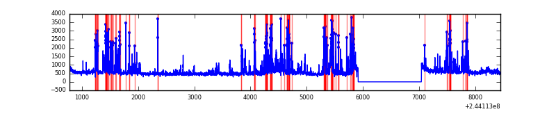 Red curve is a Poisson curve with rate = median count rate of data. |