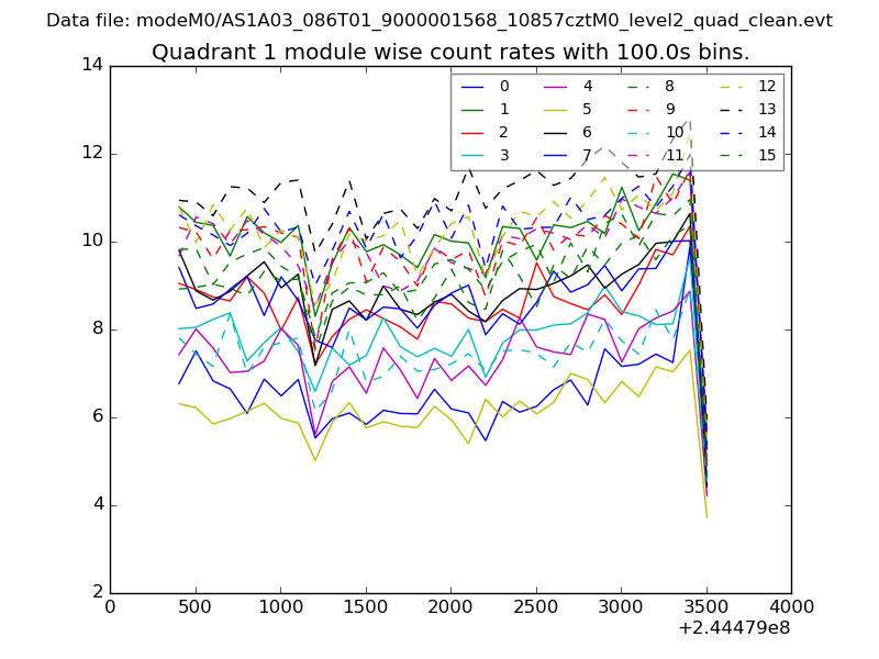 Module-wise count rates for Quadrant A