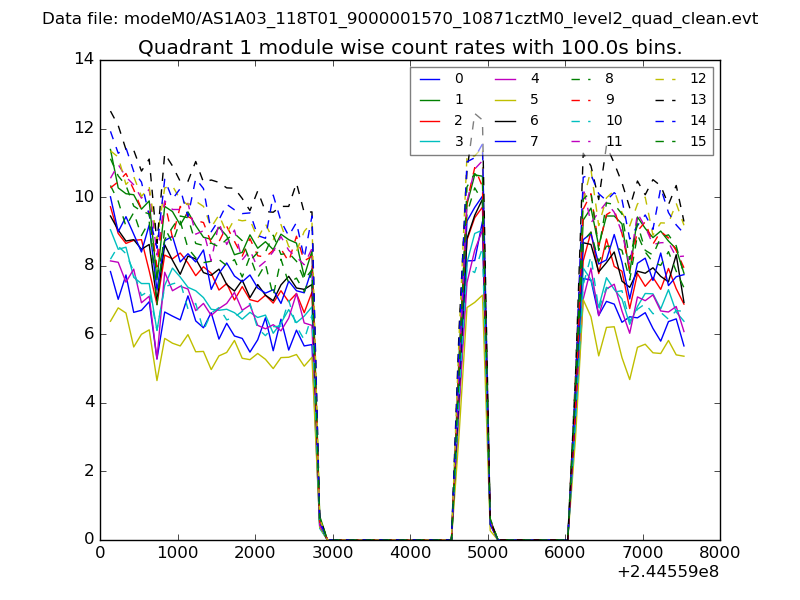 Module-wise count rates for Quadrant A