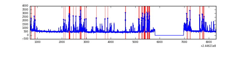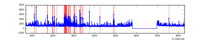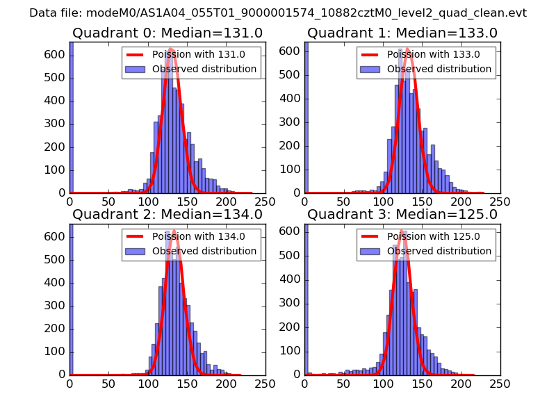 Red curve is a Poisson curve with rate = median count rate of data. |