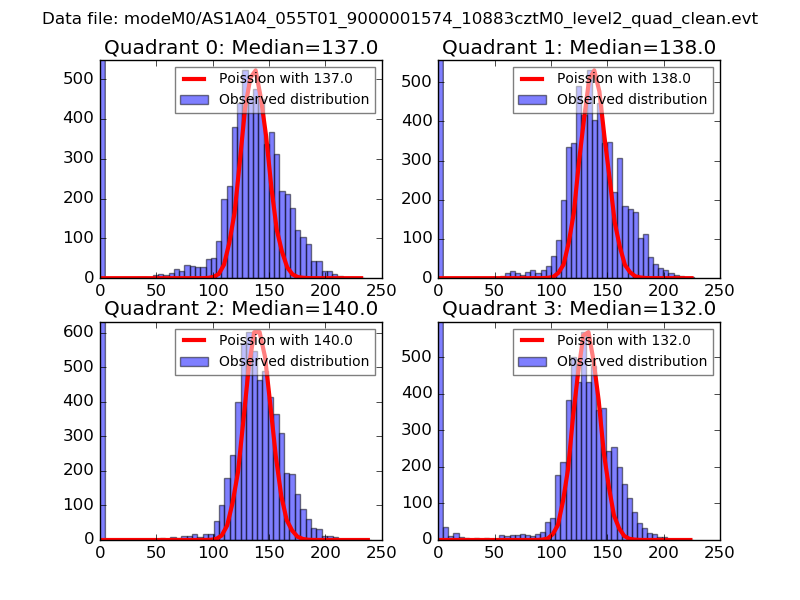 Red curve is a Poisson curve with rate = median count rate of data. |