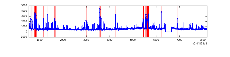 Red curve is a Poisson curve with rate = median count rate of data. |