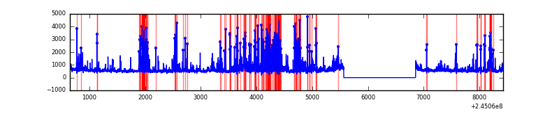 Red curve is a Poisson curve with rate = median count rate of data. |