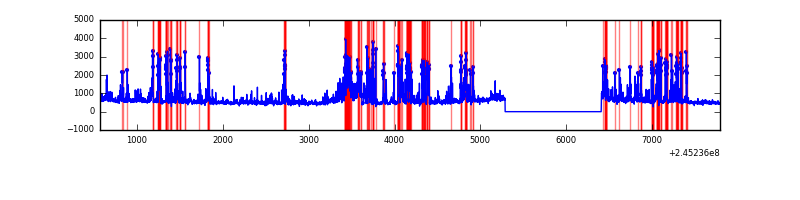 Red curve is a Poisson curve with rate = median count rate of data. |