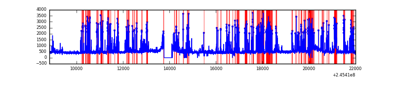 Red curve is a Poisson curve with rate = median count rate of data. |