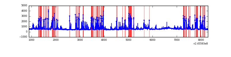 Red curve is a Poisson curve with rate = median count rate of data. |
