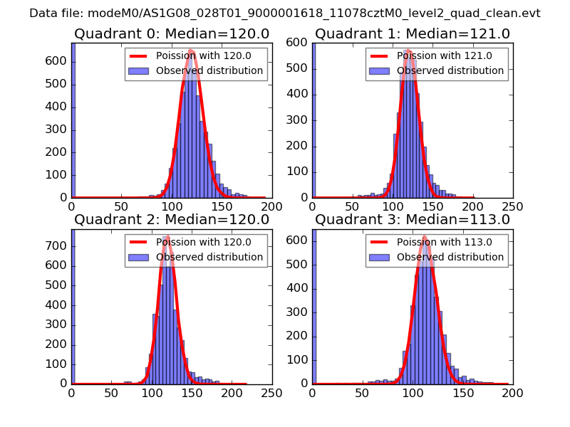 Red curve is a Poisson curve with rate = median count rate of data. |
