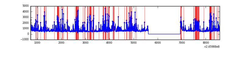 Red curve is a Poisson curve with rate = median count rate of data. |