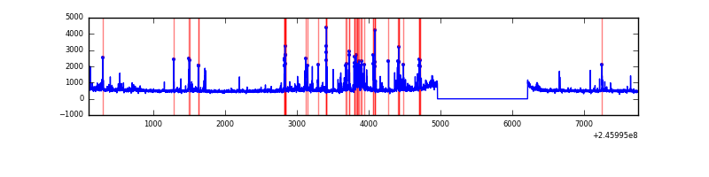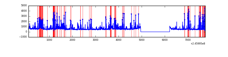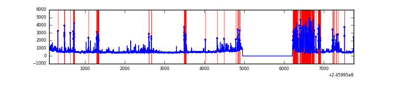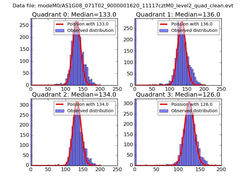Red curve is a Poisson curve with rate = median count rate of data. |