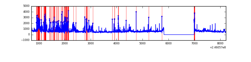 Red curve is a Poisson curve with rate = median count rate of data. |