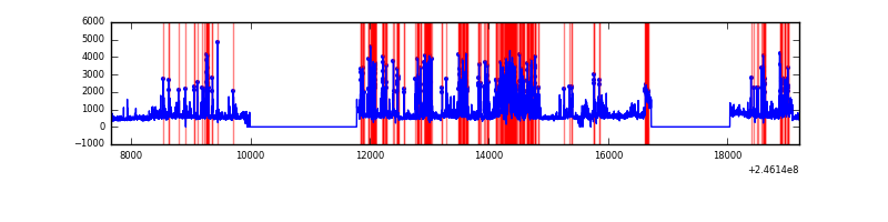 Red curve is a Poisson curve with rate = median count rate of data. |