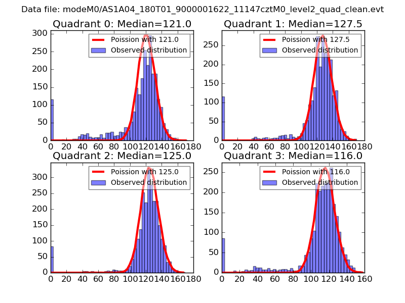 Red curve is a Poisson curve with rate = median count rate of data. |