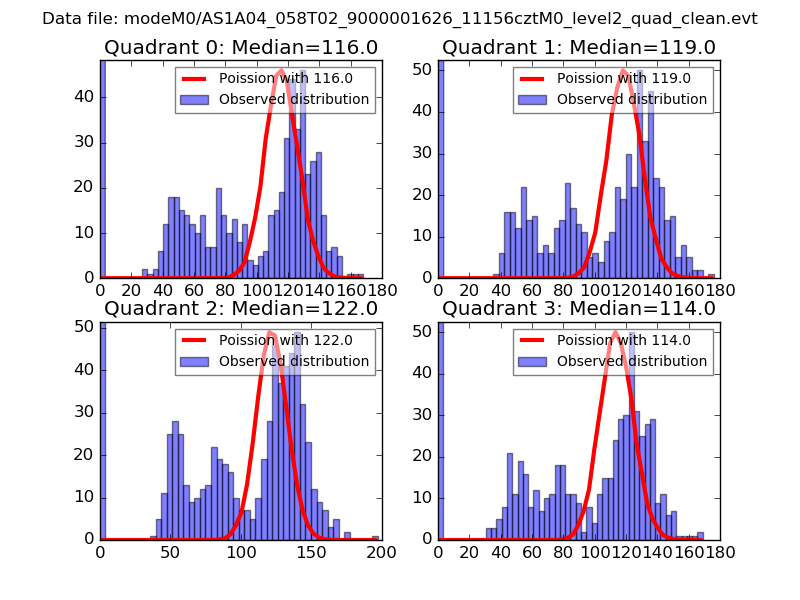 Red curve is a Poisson curve with rate = median count rate of data. |
