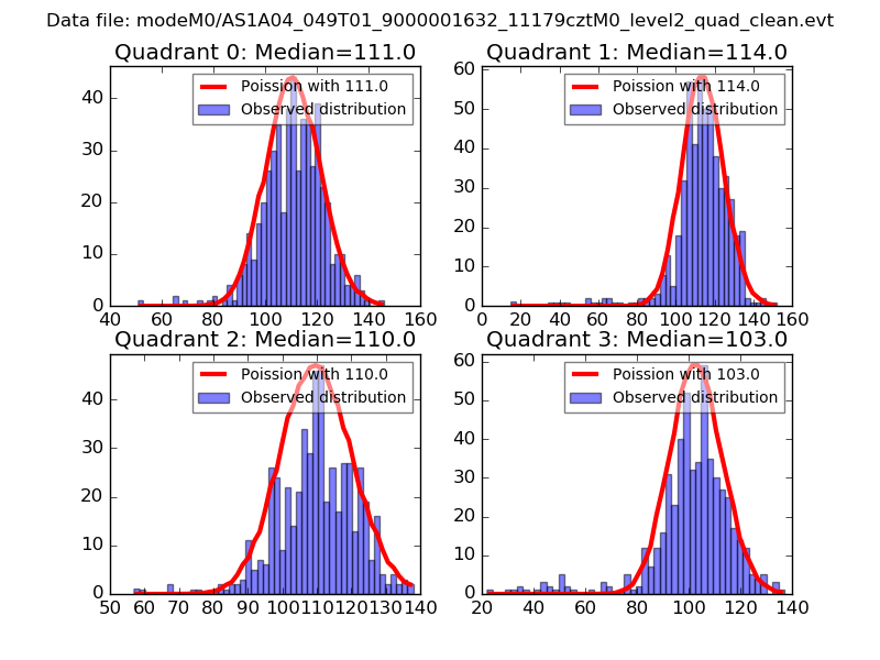 Red curve is a Poisson curve with rate = median count rate of data. |