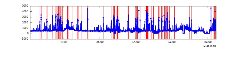 Red curve is a Poisson curve with rate = median count rate of data. |