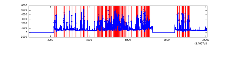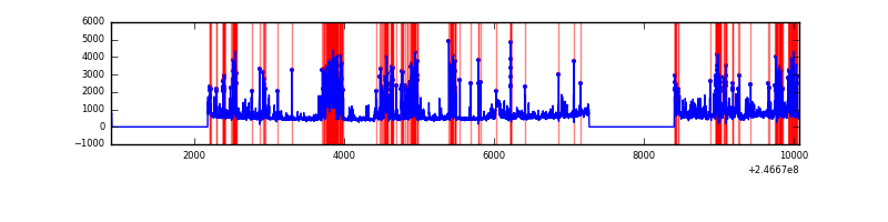 Red curve is a Poisson curve with rate = median count rate of data. |