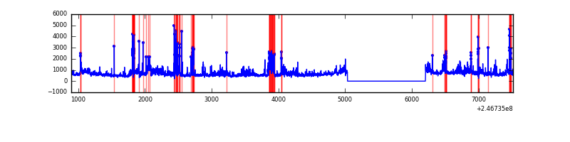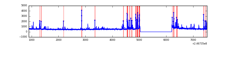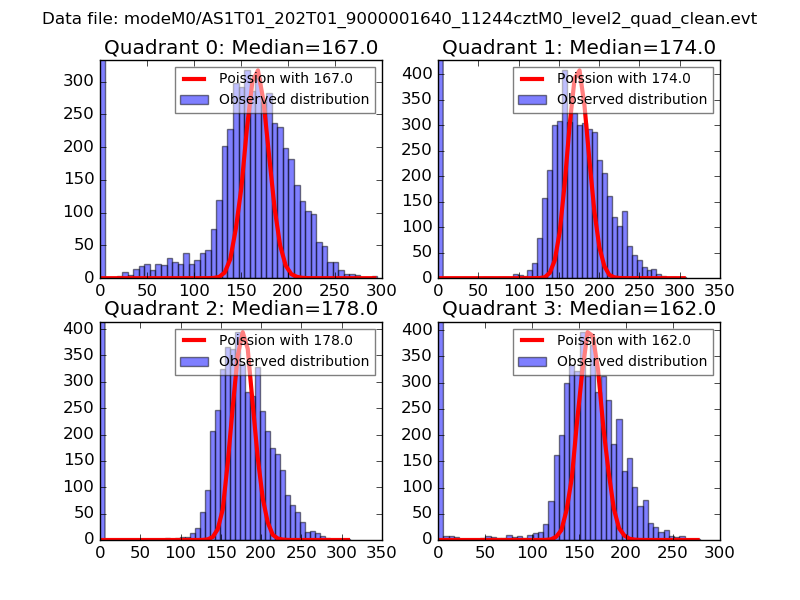Red curve is a Poisson curve with rate = median count rate of data. |