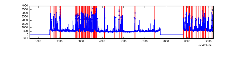 Red curve is a Poisson curve with rate = median count rate of data. |