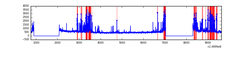 Red curve is a Poisson curve with rate = median count rate of data. |