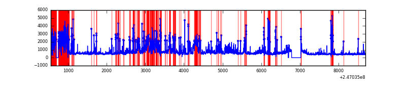 Red curve is a Poisson curve with rate = median count rate of data. |