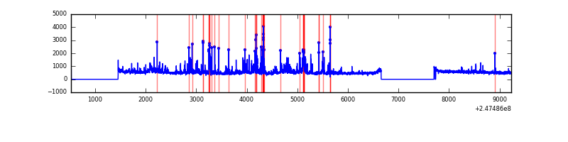 Red curve is a Poisson curve with rate = median count rate of data. |