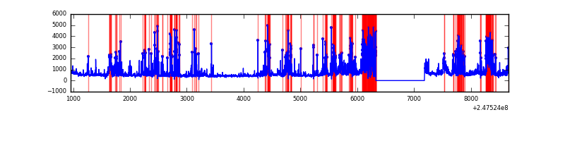 Red curve is a Poisson curve with rate = median count rate of data. |