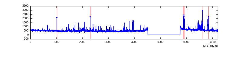 Red curve is a Poisson curve with rate = median count rate of data. |