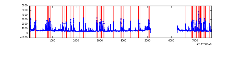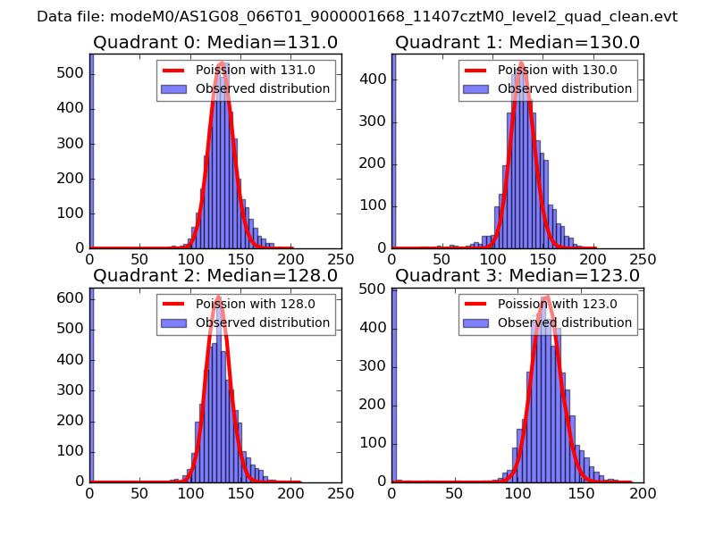 Red curve is a Poisson curve with rate = median count rate of data. |