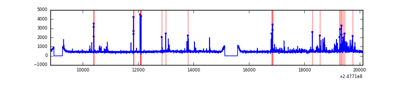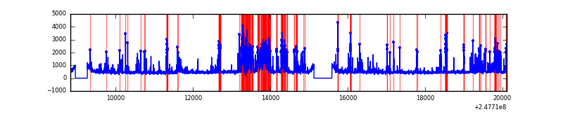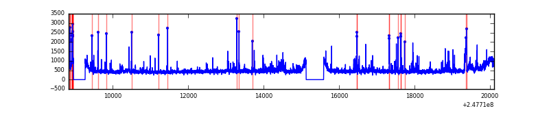 Red curve is a Poisson curve with rate = median count rate of data. |