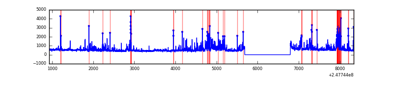 Red curve is a Poisson curve with rate = median count rate of data. |