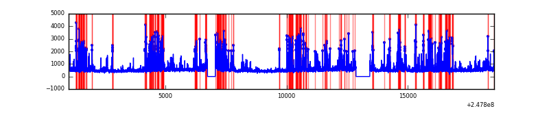 Red curve is a Poisson curve with rate = median count rate of data. |