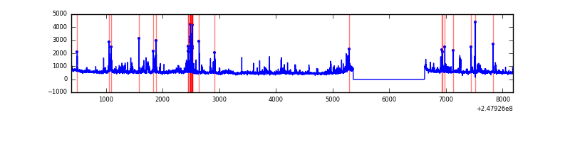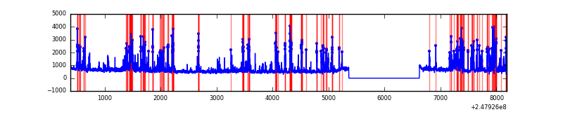 Red curve is a Poisson curve with rate = median count rate of data. |