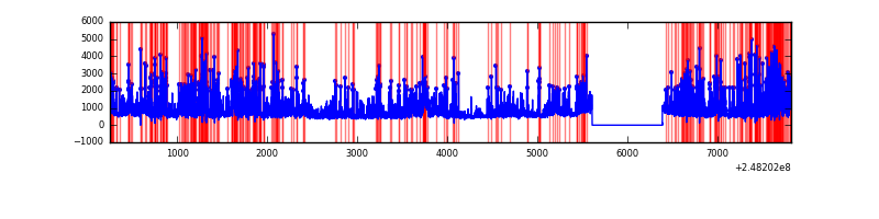 Red curve is a Poisson curve with rate = median count rate of data. |
