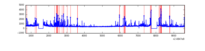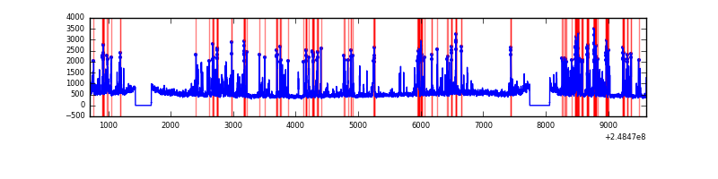 Red curve is a Poisson curve with rate = median count rate of data. |