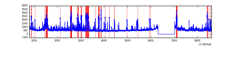 Red curve is a Poisson curve with rate = median count rate of data. |