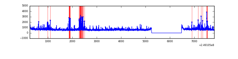 Red curve is a Poisson curve with rate = median count rate of data. |