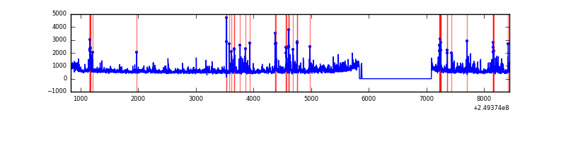 Red curve is a Poisson curve with rate = median count rate of data. |
