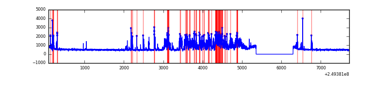 Red curve is a Poisson curve with rate = median count rate of data. |
