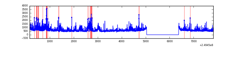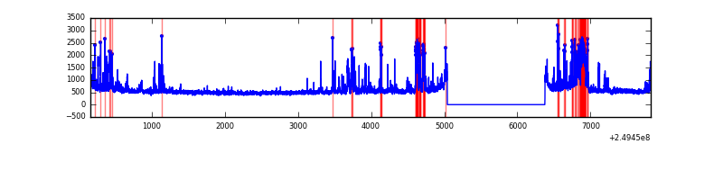 Red curve is a Poisson curve with rate = median count rate of data. |