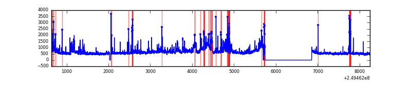 Red curve is a Poisson curve with rate = median count rate of data. |