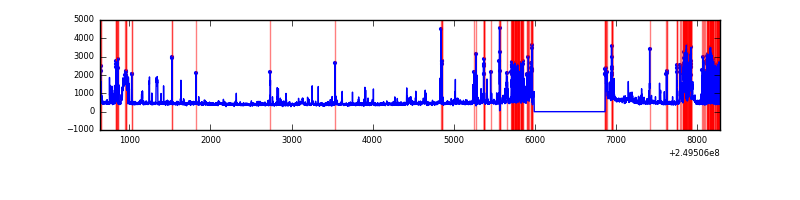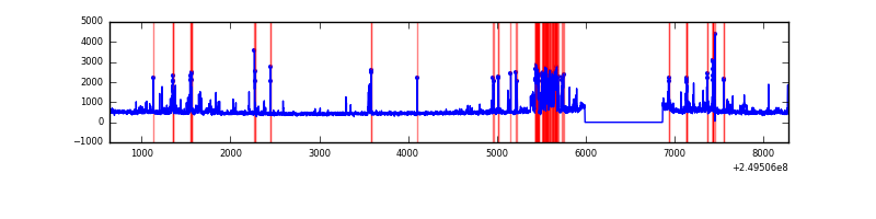 Red curve is a Poisson curve with rate = median count rate of data. |