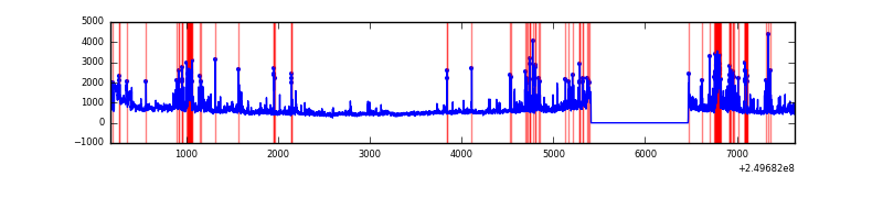 Red curve is a Poisson curve with rate = median count rate of data. |