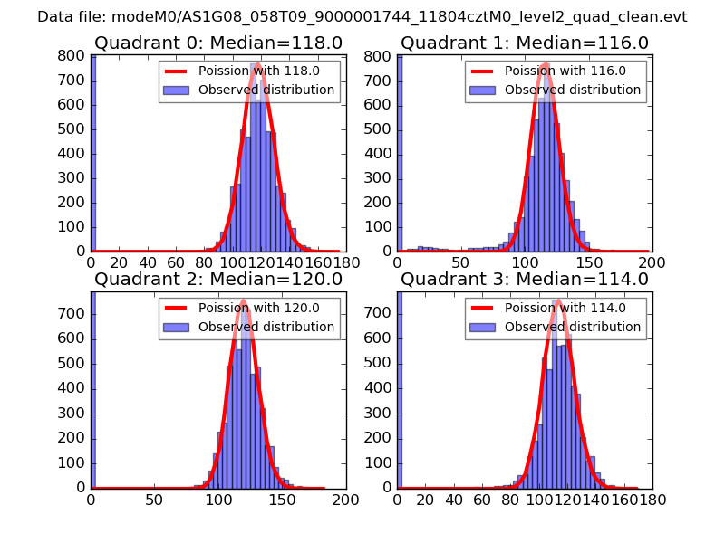 Red curve is a Poisson curve with rate = median count rate of data. |