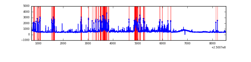Red curve is a Poisson curve with rate = median count rate of data. |